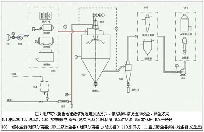 高速离心喷雾干燥机是液体成形工艺和干燥工业中广泛应用的工艺。适用于从悬乳液、溶液、乳液和糊状液体原料中生产粉状、颗粒状固体产品。因此,当成品的颗粒大小分布、残留水份含量、堆积密度和颗粒形状都符合精确的标准时,喷雾干燥机是十分理想的干燥工艺。